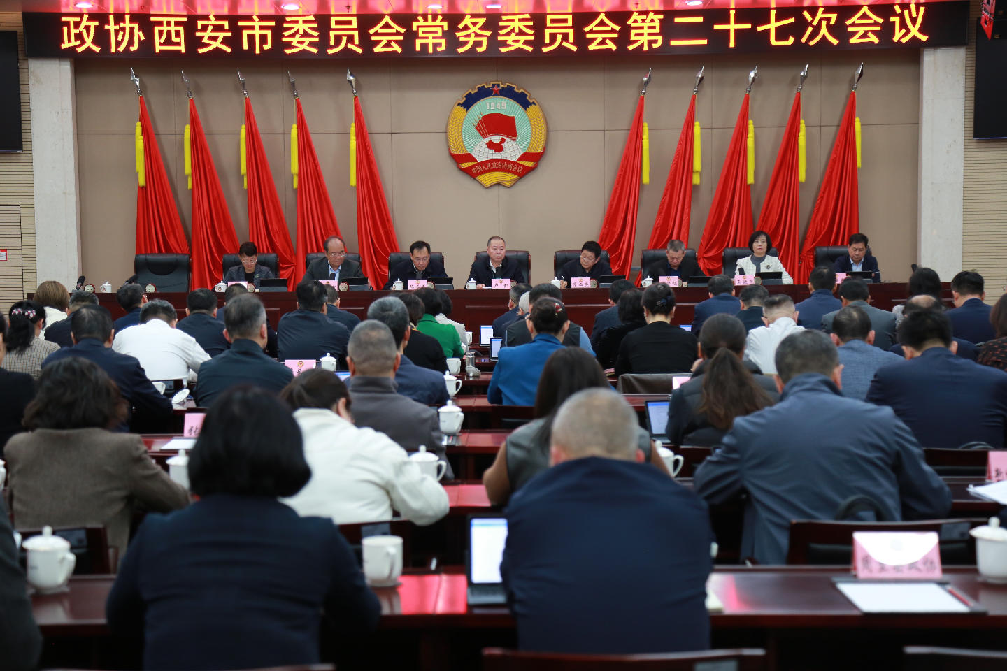 会议要求,要全面对标对表,牢牢把握政府工作报告和“十五五”规划纲要明确的目标任务以及全国政协的工作要求,紧扣全市中心工作,优化完善协商方案、精心组织协商议政、扎实开展民主监督。要强化责任担当,扎实开展树立和践行正确政绩观学习教育,统筹抓好当前各项工作,着力加强自身建设,为实现“十五五”良好开局、奋力开创中国式现代化西安实践新局面作出新的更大贡献。
