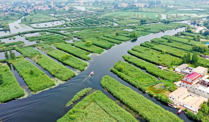 2021年8月14日,船舶在雄安新区白洋淀内行驶。新华社记者 牟宇 摄