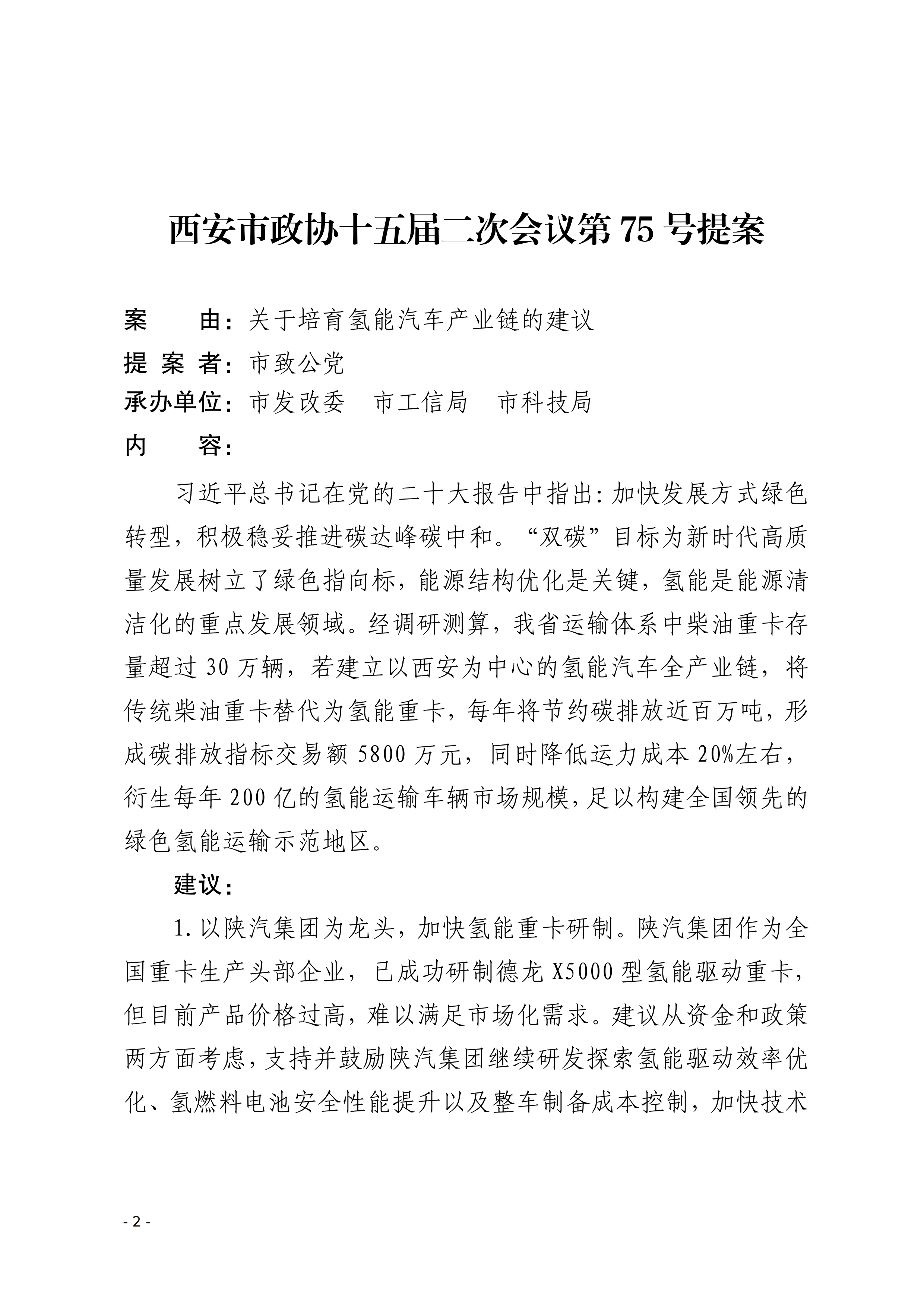 市政协十五届二次会议关于“氢能产业发展”相关提案