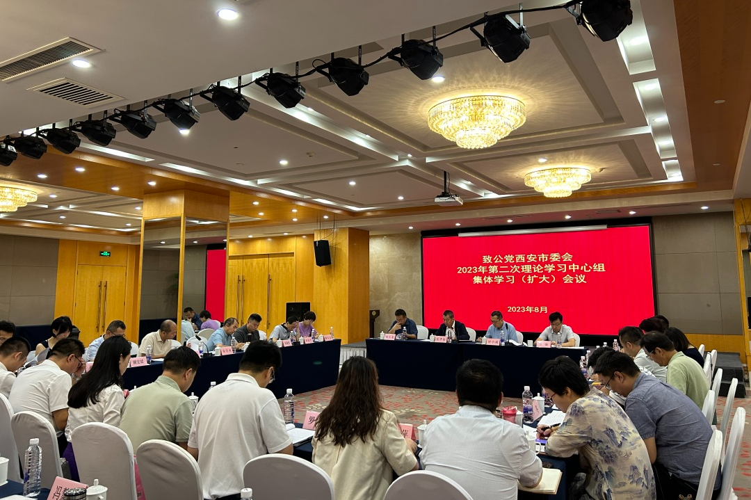 8月18日,致公党西安市委会召开2023年第二次理论学习中心组集体学习(扩大)会议。市政协副主席、市致公党主委张华俊主持会议并讲话。市委会领导班子成员、市委会常委、各专委会及基层组织负责人、机关全体干部近50人参加会议。会议传达学习习近平总书记在听取陕西省委和省政府工作汇报时的重要讲话精神,习近平总书记在四川、陕西汉中考察时的重要讲话重要指示精神。