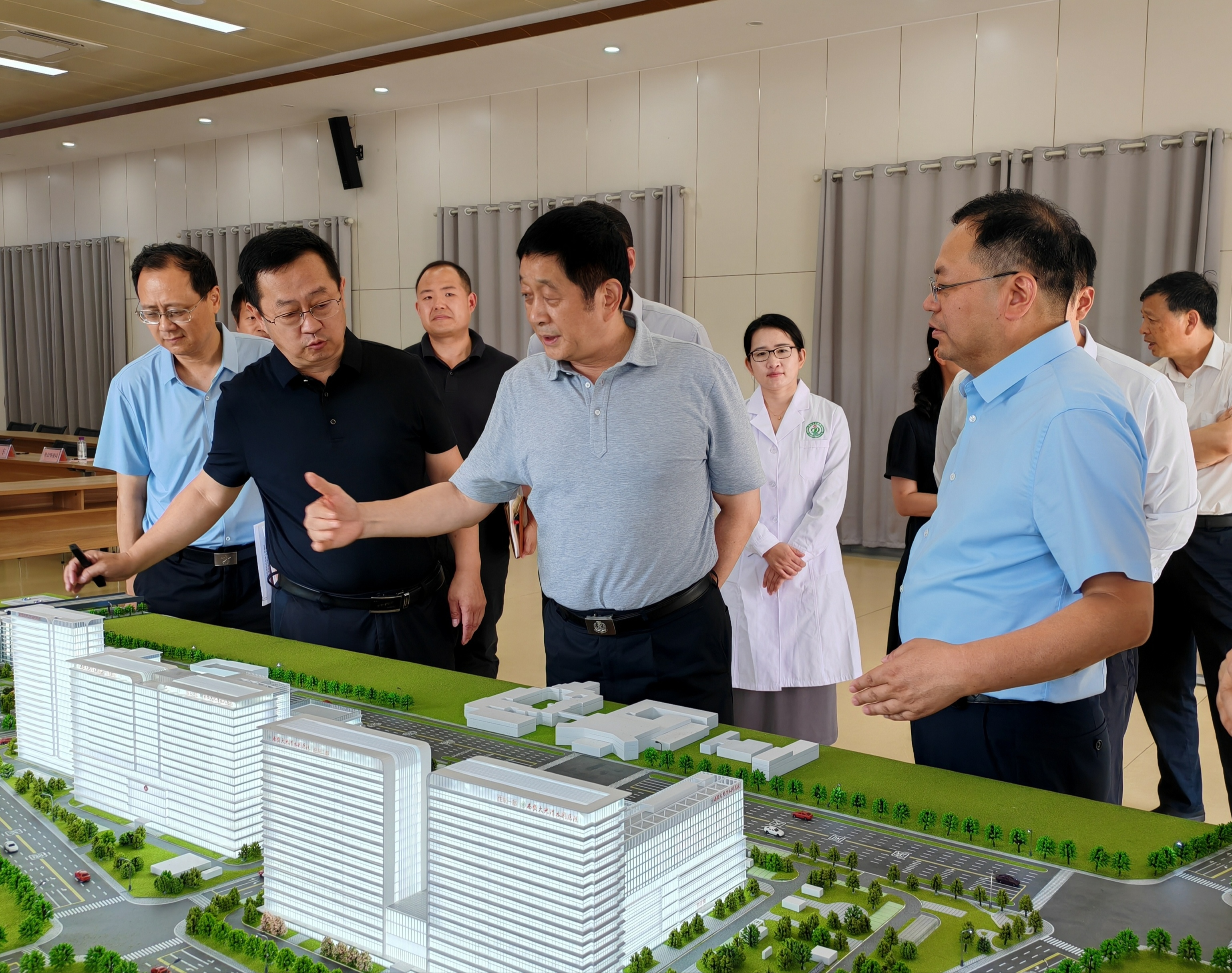 6月12日下午,市政协副主席肖西亮赴经开区、新城区开展调研并进行现场办公。实地察看了西安大兴渭水园医院项目和百度智慧中心项目建设进度,并召开座谈会,了解项目建设中存在的困难及需要协调解决的问题。