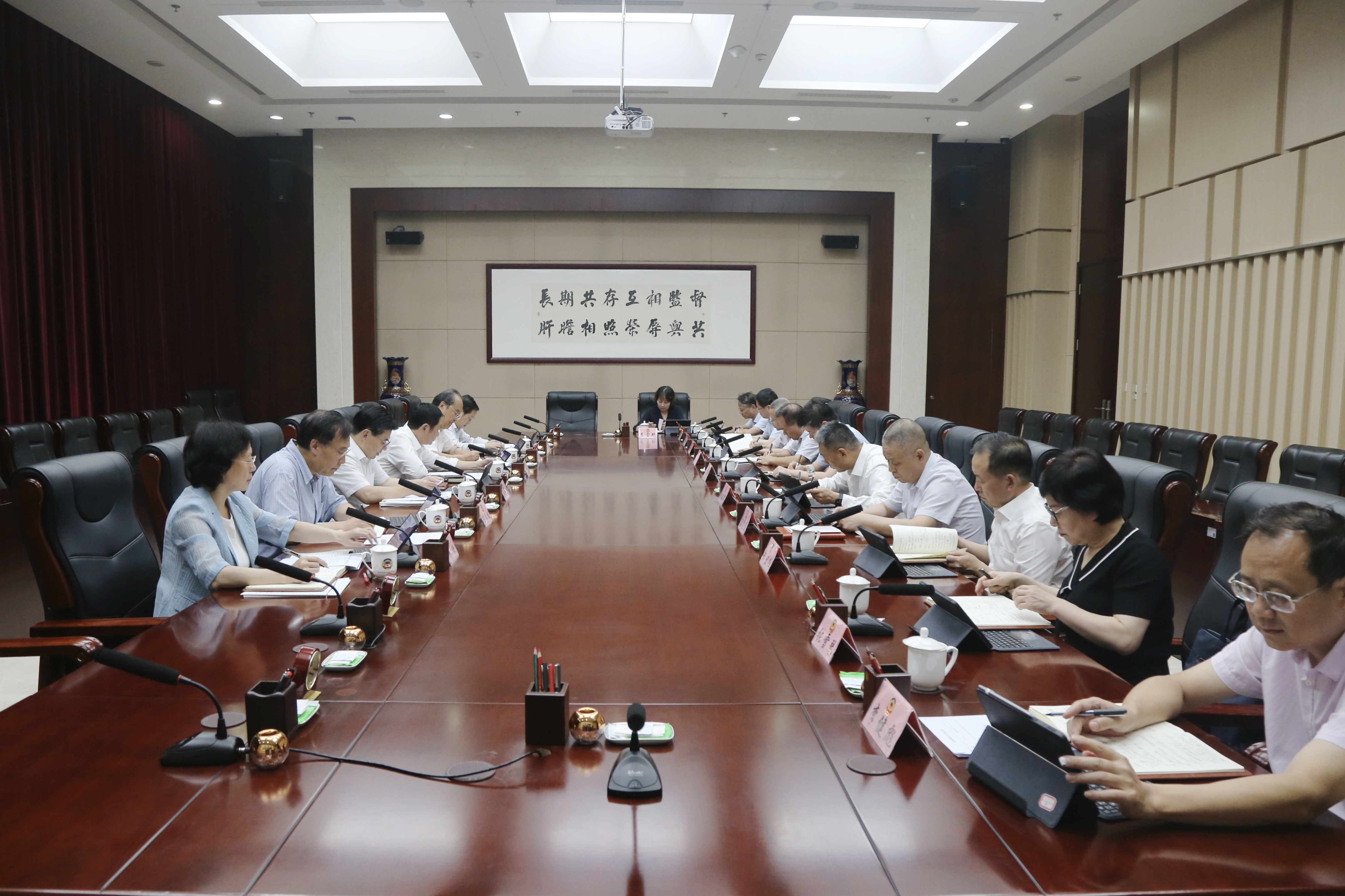 7月16日,市政协召开党组理论学习中心组学习会,集体学习《习近平关于全面加强党的纪律建设论述摘编》《中国共产党纪律处分条例》,围绕严守党的“六项纪律”开展交流研讨。市政协党组书记、主席王吉德主持并讲话。市政协领导班子成员参加会议。