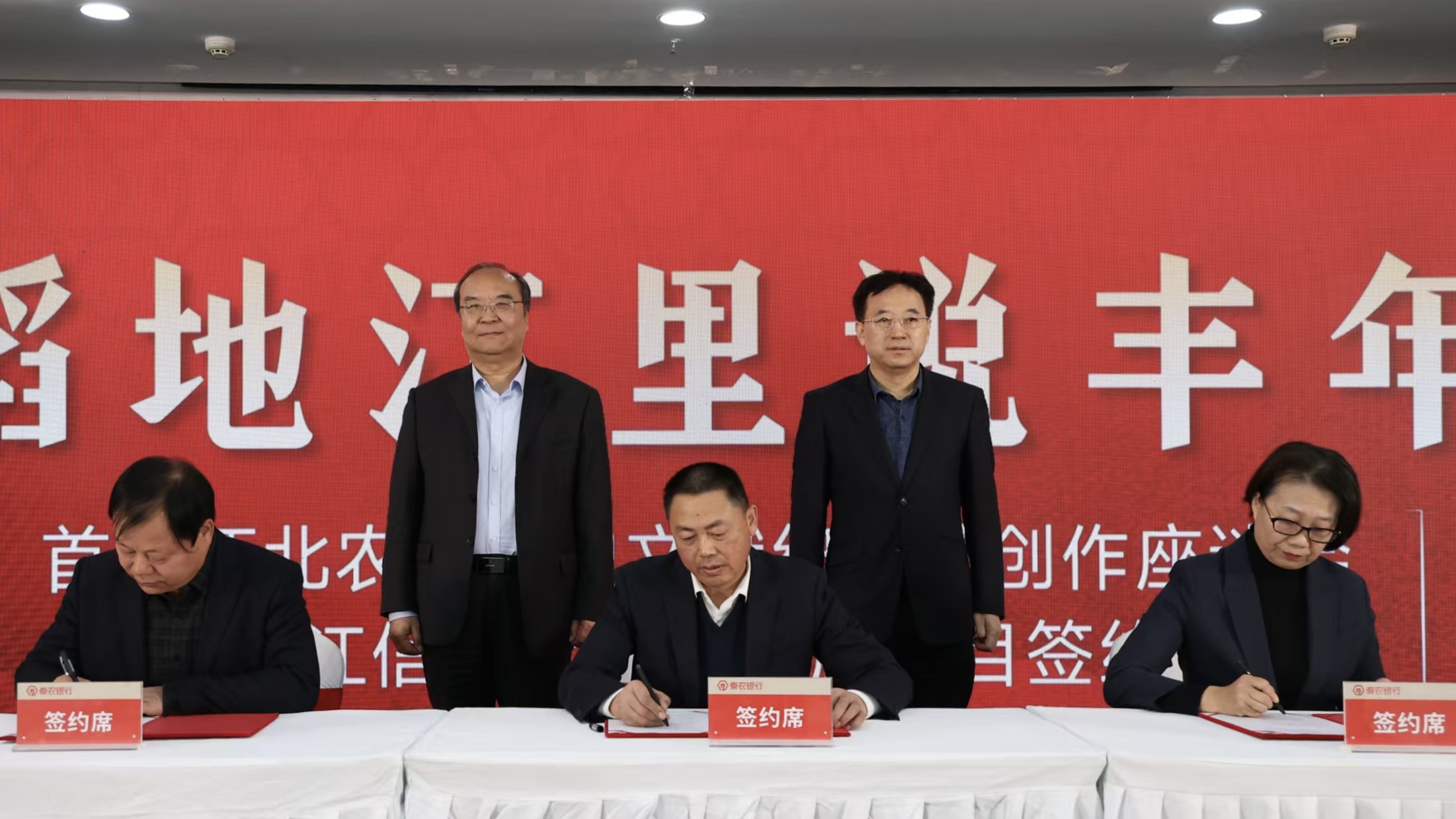 签约仪式上,秦农银行、长安区政协、稻地江村委会三方代表签订了战略合作协议。秦农银行与王莽街道办事处、稻地江村委会签订土地租赁协议。座谈会上,专家、学者对《稻地江里说丰年》纪录片提供了创作思路和建议。下一步,市政协驻村工作队和稻地江村“两委”将协助秦农银行建成集重点场景模拟、现场情景展示等为一体的红色金融研学基地,打造红色农金宣传品牌。