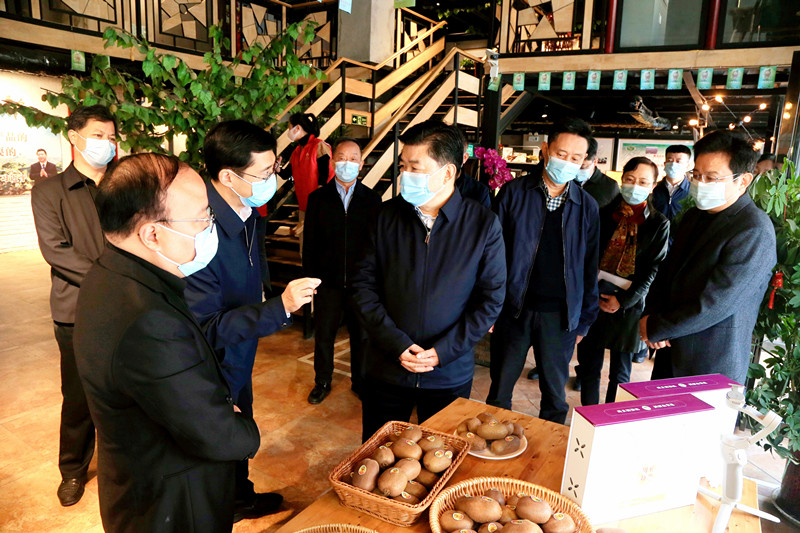 王吉德一行先后来到中国猕猴桃网、陕西东阳云达物流有限公司和西安金周现代农业有限公司,详细了解农产品大数据平台运行、仓储物流和线上销售等情况。