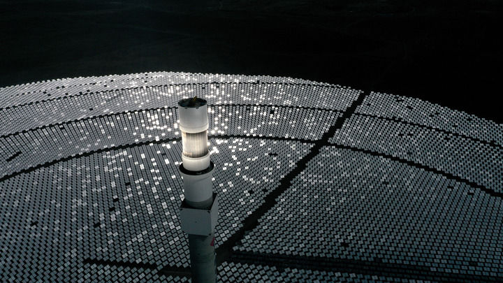 这是位于青海省海南藏族自治州共和县光伏产业园内一处塔式光热发电项目(2021年3月3日摄)。新华社记者 张宏祥 摄