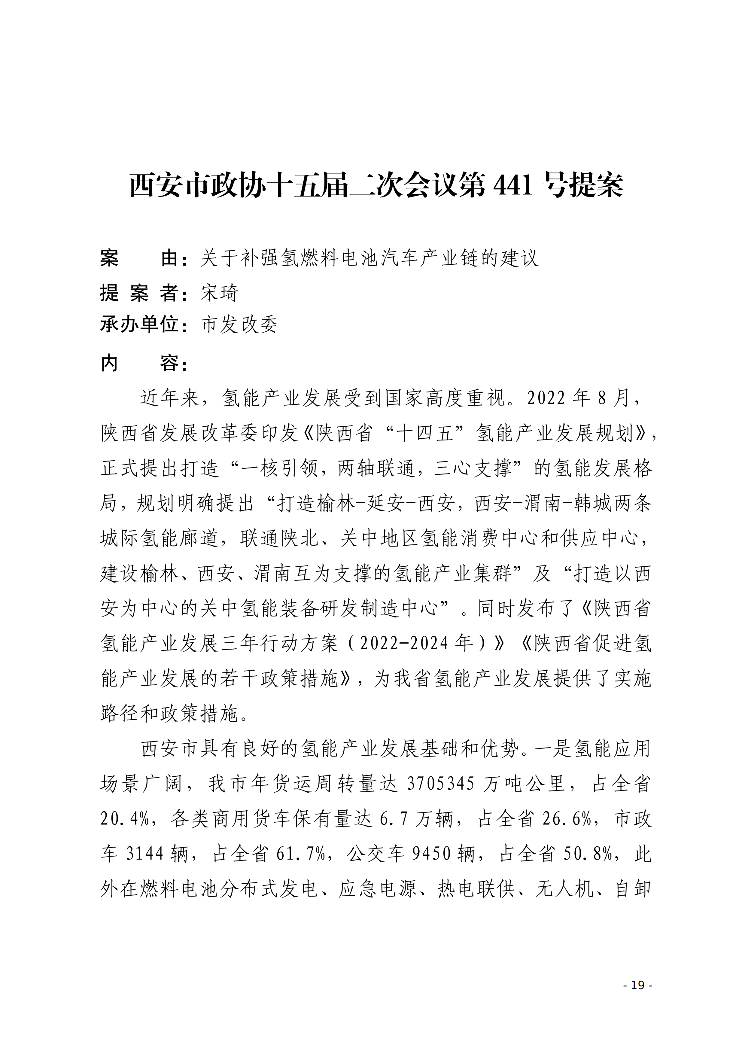 市政协十五届二次会议关于“氢能产业发展”相关提案