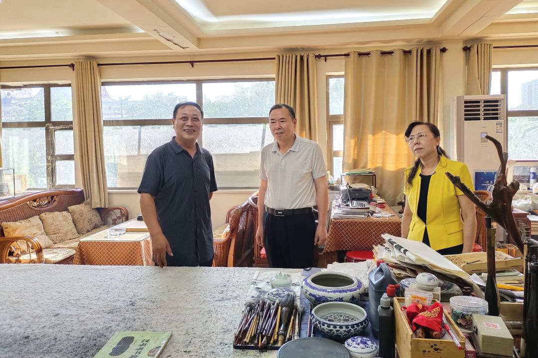 8月4日下午,市政协副主席卢凯调研西安浙文创集团有限公司和走访文化艺术界别委员王纲。市政协研究室主任任莉娟参加活动。在西安浙文创集团有限公司,卢凯一行参观企业展厅,了解企业发展历程和经营情况,与企业负责人座谈交流,并认真听取企业发展面临的问题和意见建议。随后,卢凯一行来到位于北大街的品菊轩,与王纲委员座谈交流,了解委员思想、学习、工作、生活、履职等情况,并就书法创作进行了探讨交流。
