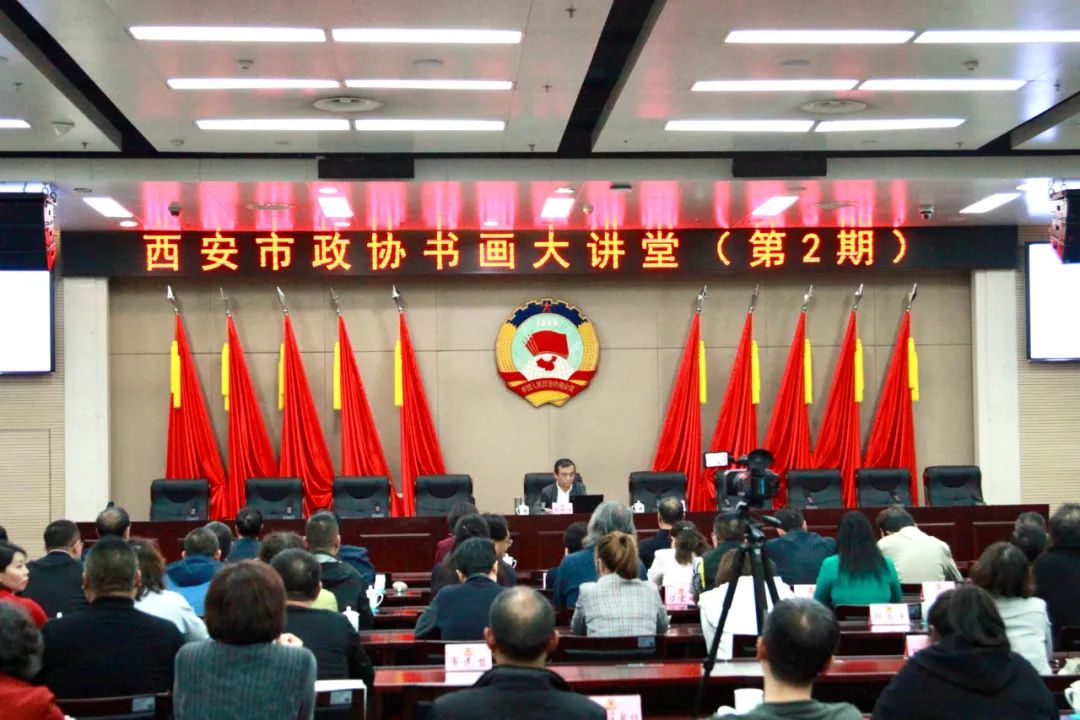 郭线庐围绕“弘扬长安画派艺术精神 再创陕西美术新辉煌”作专题讲座,从介绍长安画派的发展历程入手,结合自身多年从事书画创作、教学、研究的体会和经验,以美术理论到创作实践的视角,详细解读了第十三届全国美术作品展览获奖作品及陕西省进京作品、陕西省庆祝建党100周年美术作品展览情况,同大家一起回顾长安画派代表人物、经典作品及60多年来长安画派发展壮大所取得的非凡成就。 讲座课上,郭线庐还同书画爱好者互动交流了学习、创作的认识和方法,不仅让大家对长安画派的形成、发展、艺术成就等方面有了更多了解,也让大家得到了艺术修养上的熏陶和兴趣爱好上的启迪。 部分市政协委员、书画院成员、机关工作人员,市级各民主党派、工商联和部分区县政协的书画爱好者应邀参加大讲堂。