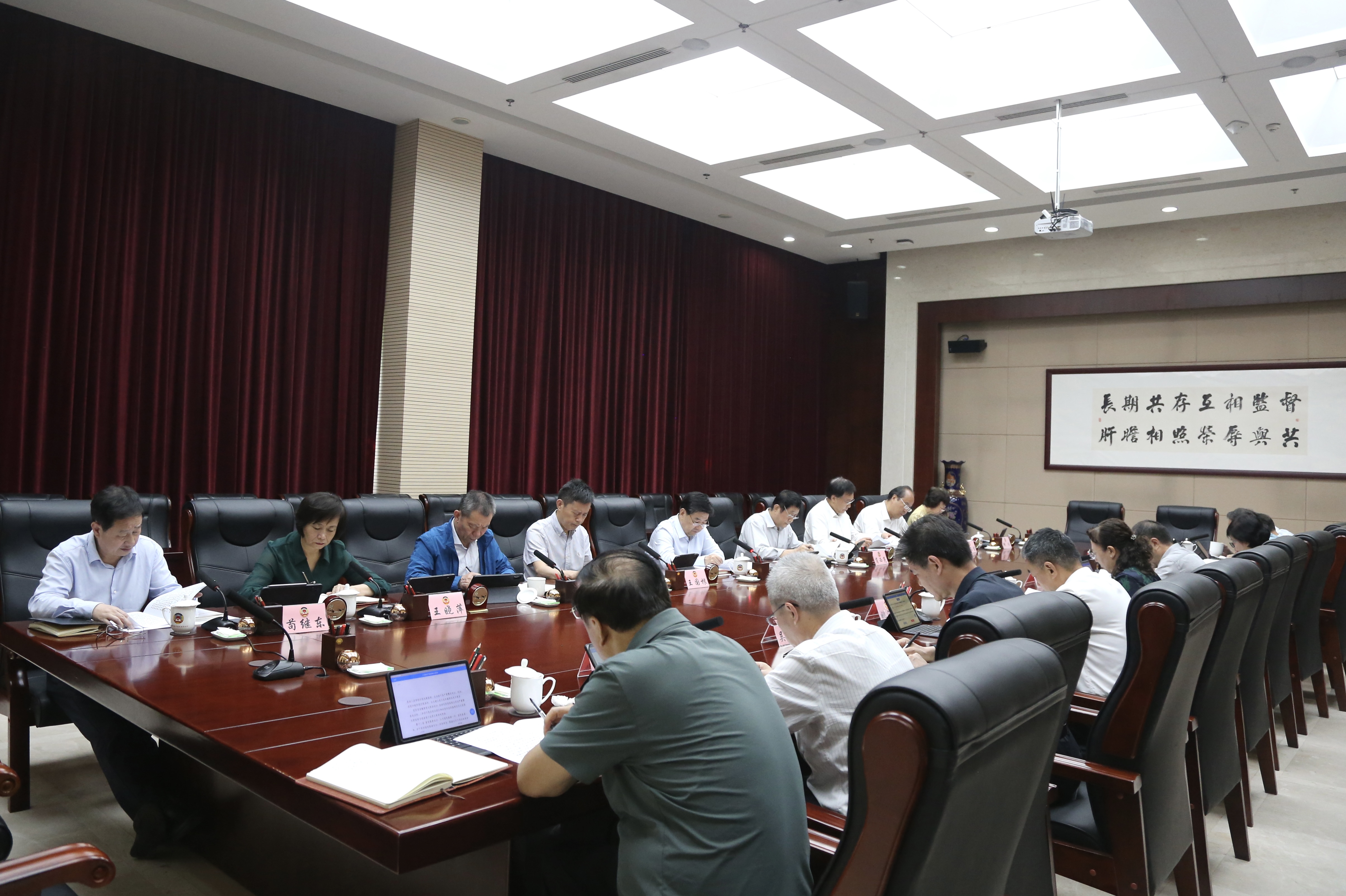 5月16日,市政协召开党组理论学习中心组学习会,重温学习习近平总书记在听取陕西省委和省政府工作汇报时的重要讲话和《中国共产党纪律处分条例》部分篇章,结合工作实际,开展研讨交流。市政协党组书记、主席王吉德主持会议并讲话。市政协领导班子成员参加。