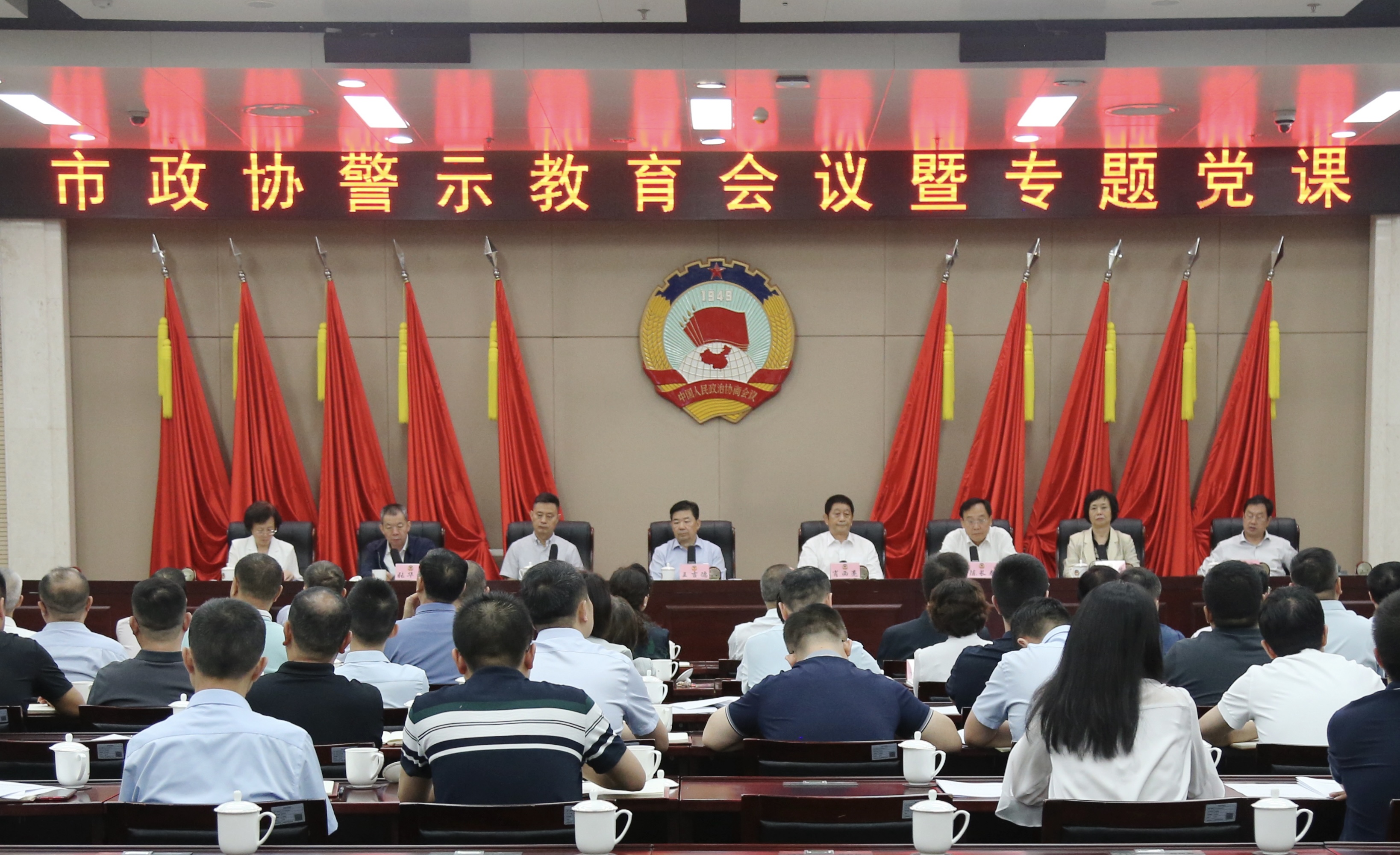 6月6日,市政协召开警示教育会议,深入学习习近平总书记关于全面加强党的纪律建设的重要论述和全省、全市警示教育会议精神,观看警示教育片。市政协党组书记、主席王吉德讲话并作专题党课辅导,市政协领导班子成员出席会议。