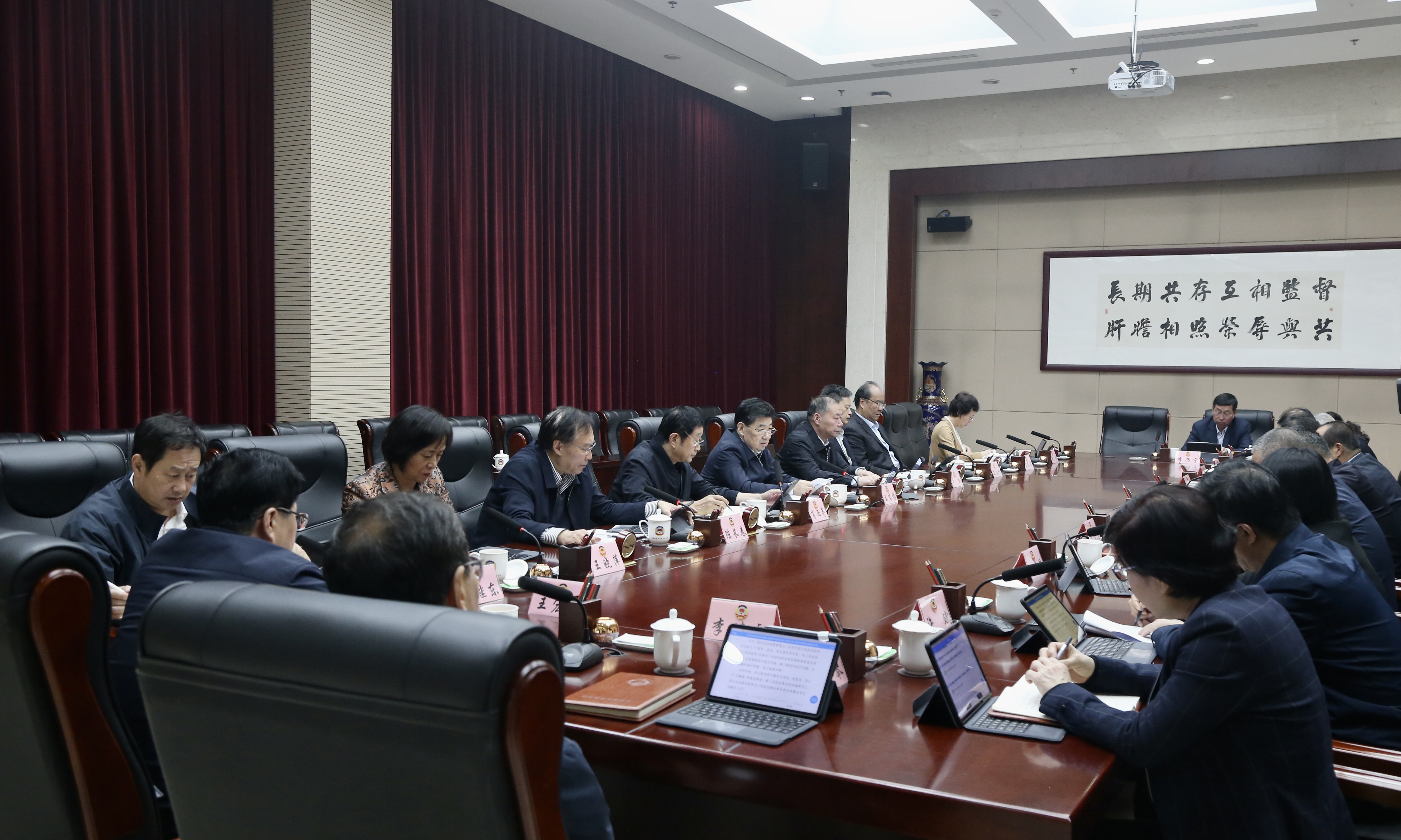 11月1日,市政协召开党组理论学习中心组学习会议,深入学习习近平总书记在庆祝中国人民政治协商会议成立75周年大会上的重要讲话精神,集体学习《中共中央关于进一步全面深化改革、推进中国式现代化的决定》。市政协党组书记、主席王吉德主持并讲话。市政协领导班子成员参加。