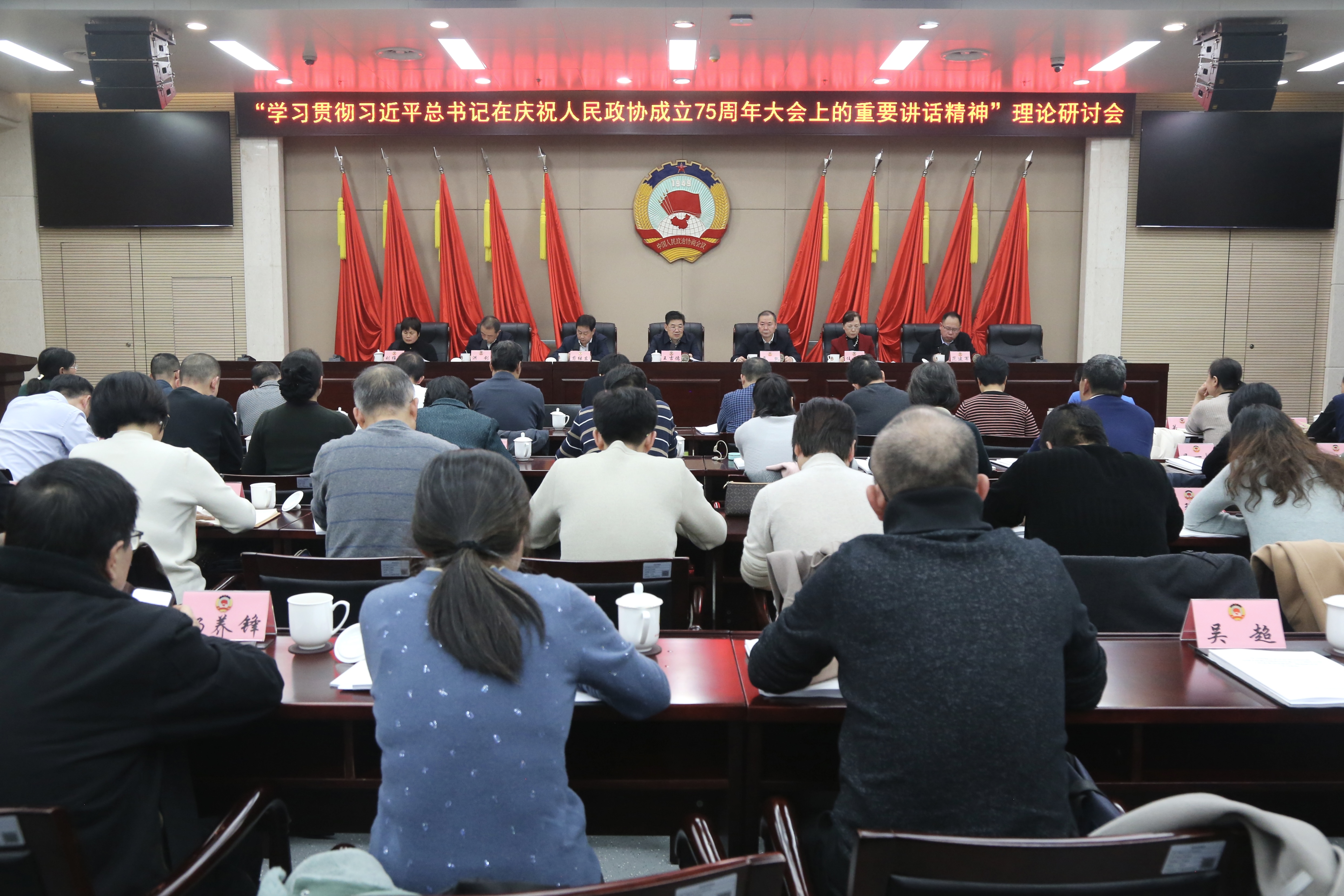 王吉德指出,学习贯彻习近平总书记在庆祝中国人民政治协商会议成立75周年大会上的重要讲话精神,对于人民政协贯彻落实中共二十大和二十届三中全会精神,牢牢把握履职正确方向,推动政协事业高质量发展,具有十分重要的意义。要全面准确领会习近平总书记重要讲话精神的重大意义和深刻内涵,以理论研究创新推动政协事业高质量发展。