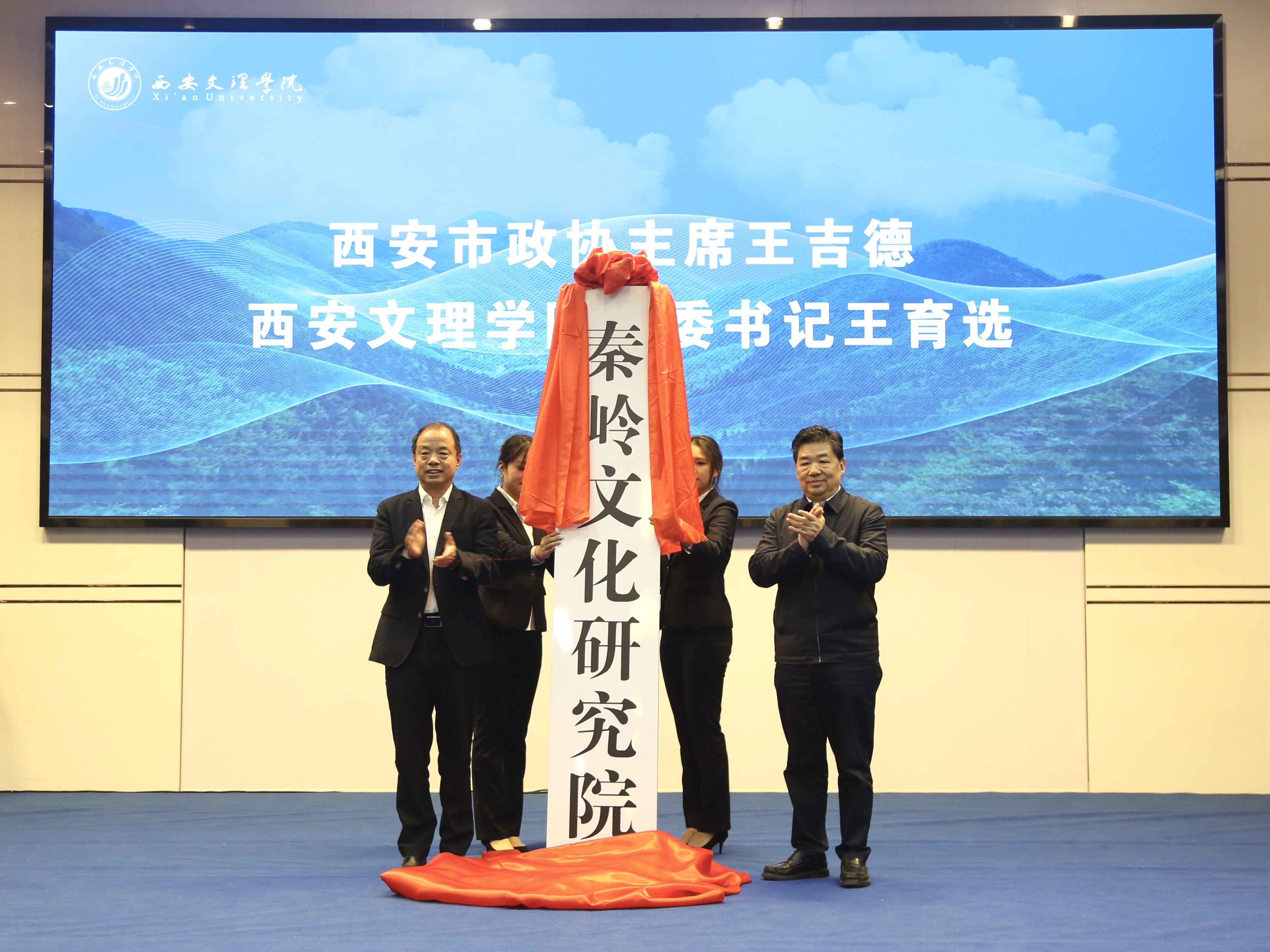 12月11日,秦岭研究工作创新推进会在西安文理学院召开。市挖掘秦岭北麓生态和人文价值工作专班组长、市政协主席王吉德出席会议,市挖掘秦岭北麓生态和人文价值工作专班副组长、西安文理学院党委书记王育选参加会议,共同为秦岭文化研究院揭牌。