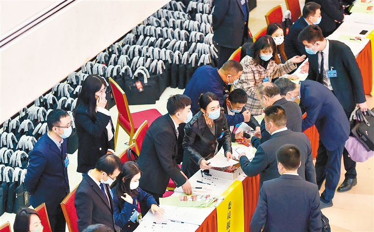 3月27日,参加政协西安市第十五届委员会第一次会议的委员们陆续抵达会议驻地报到。