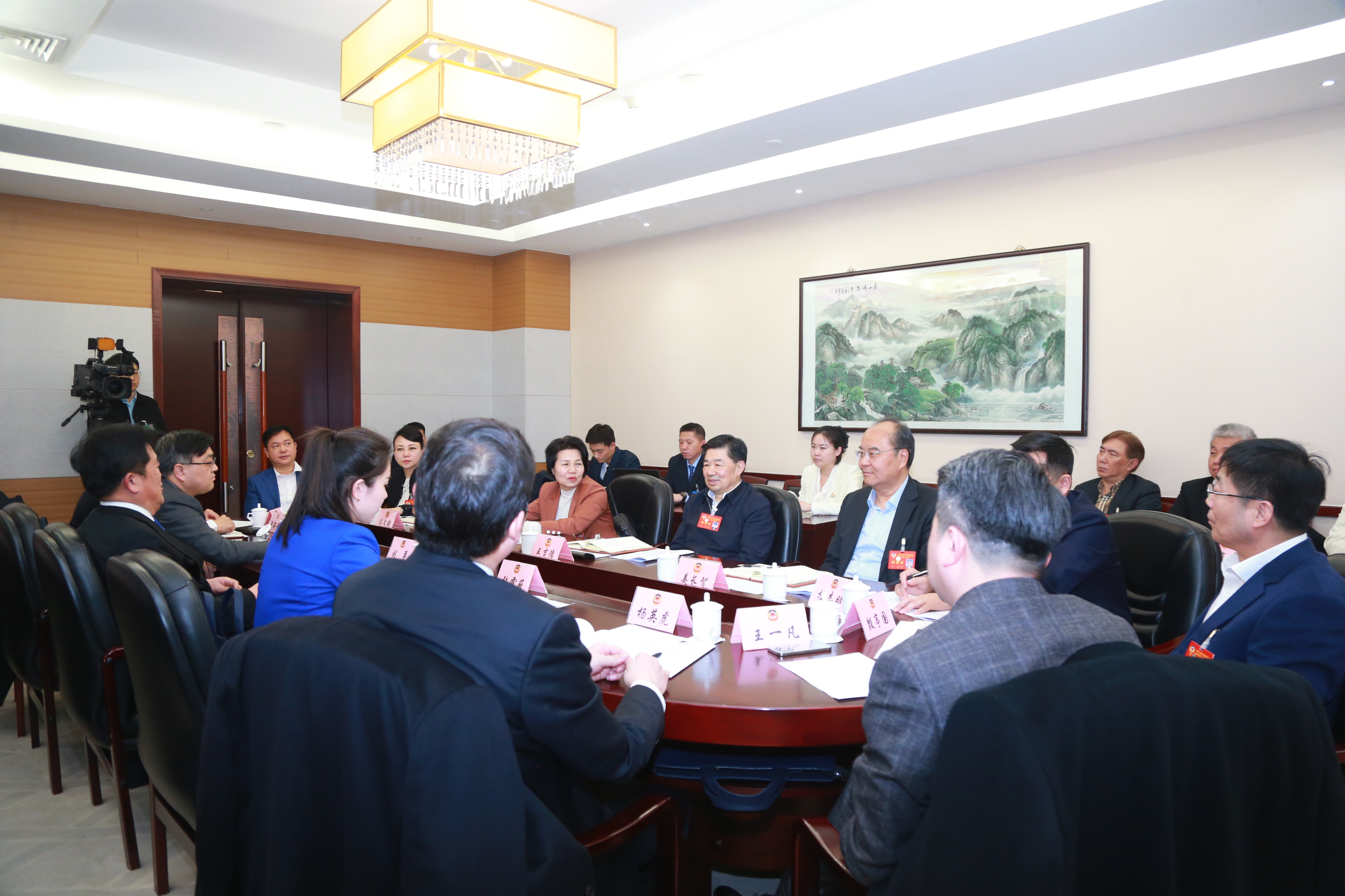 2月1日,西安市政协主席王吉德来到市政协工商联界别组,与委员一起讨论政协西安市第十五届委员会常务委员会工作报告和提案工作情况的报告。